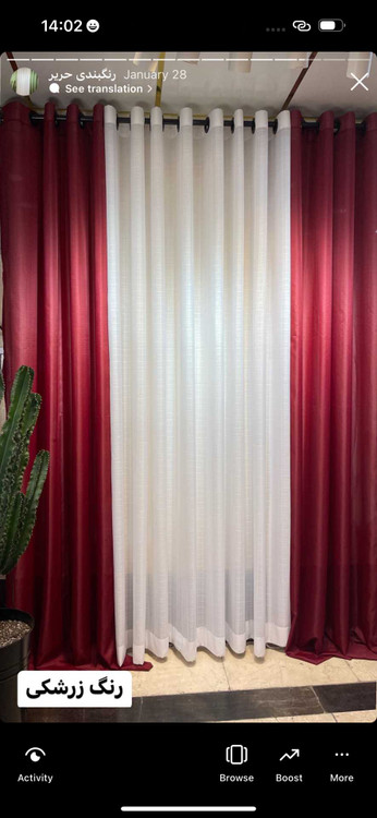 پرده حریر رنگ زرشکی