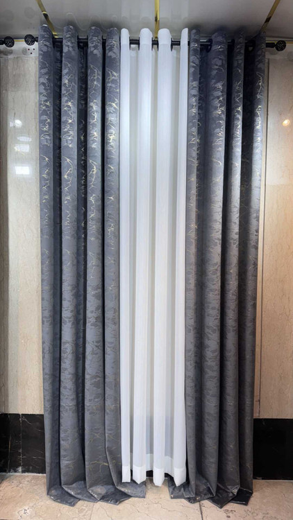 پرده طلاکوب وارداتی رنگ طوسی تیره