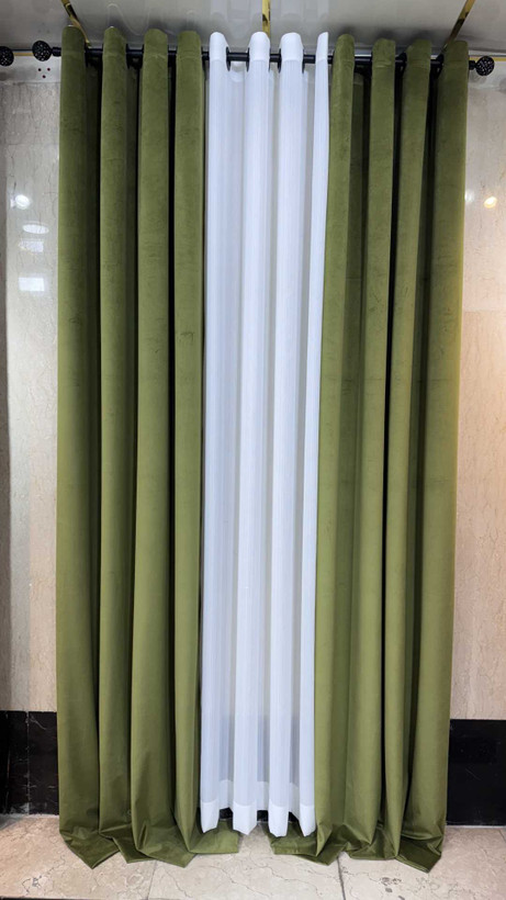 پرده مخمل وارداتی رنگ سبز زیتونی