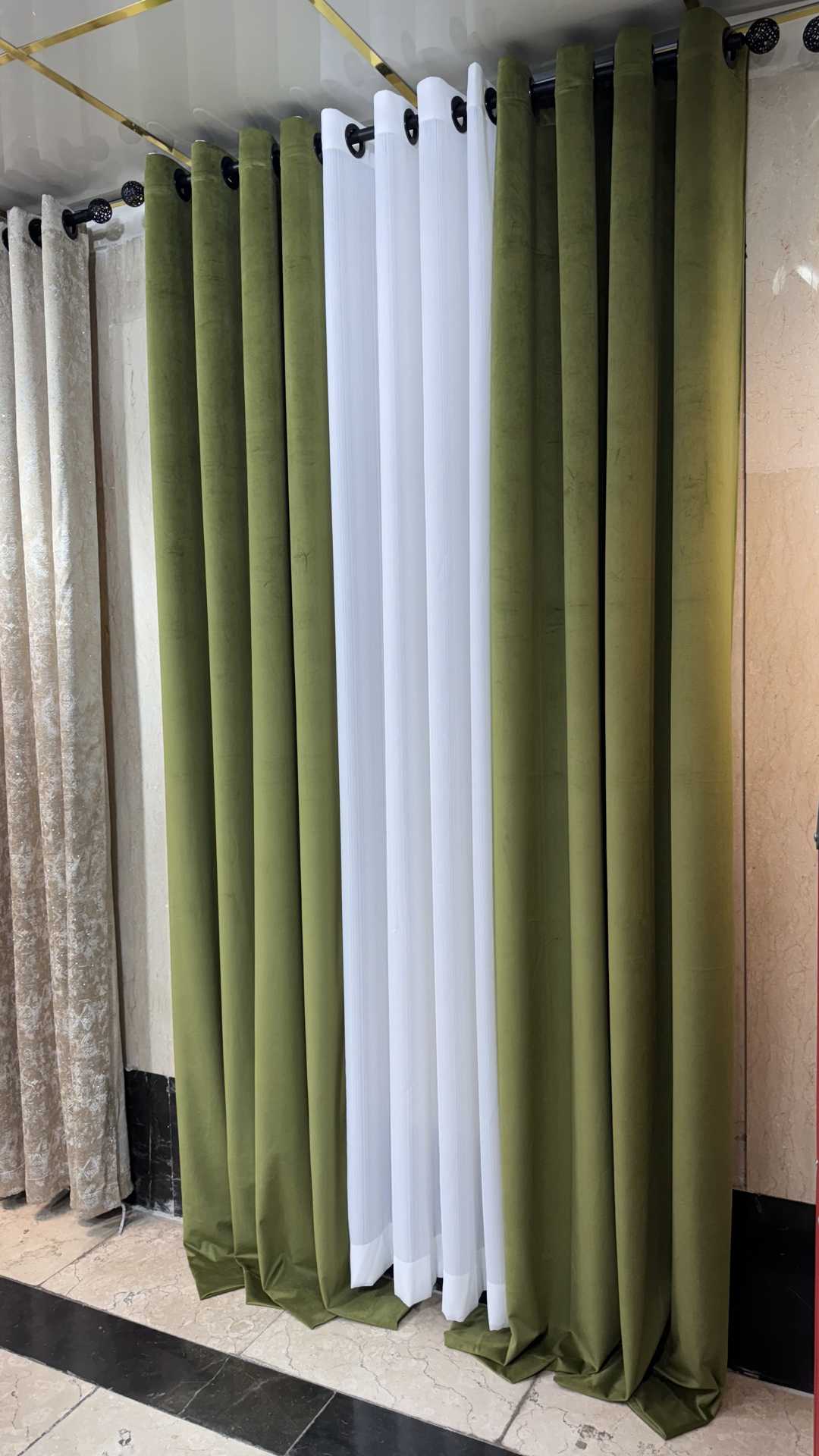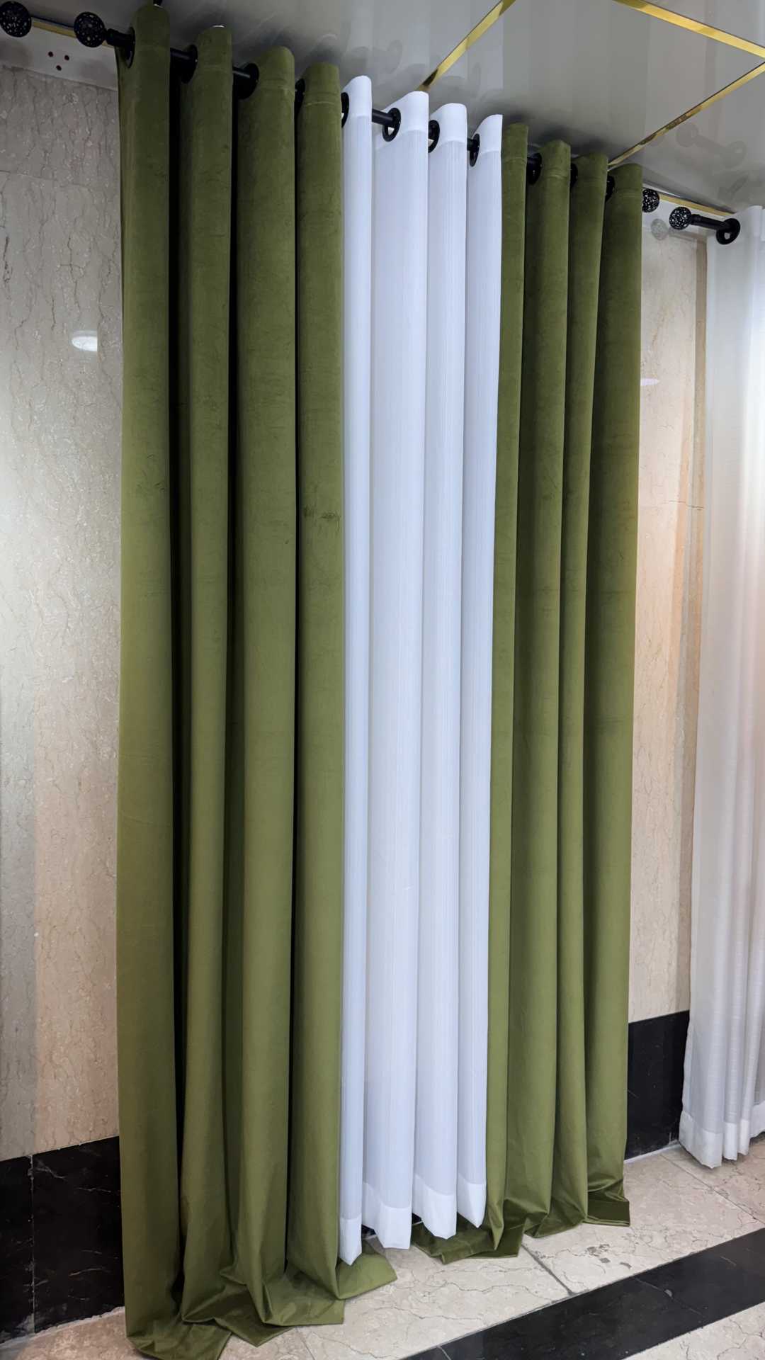 پرده مخمل وارداتی رنگ سبز زیتونی