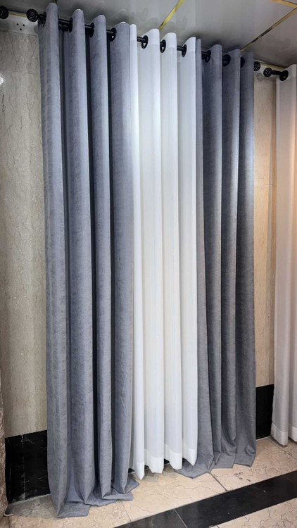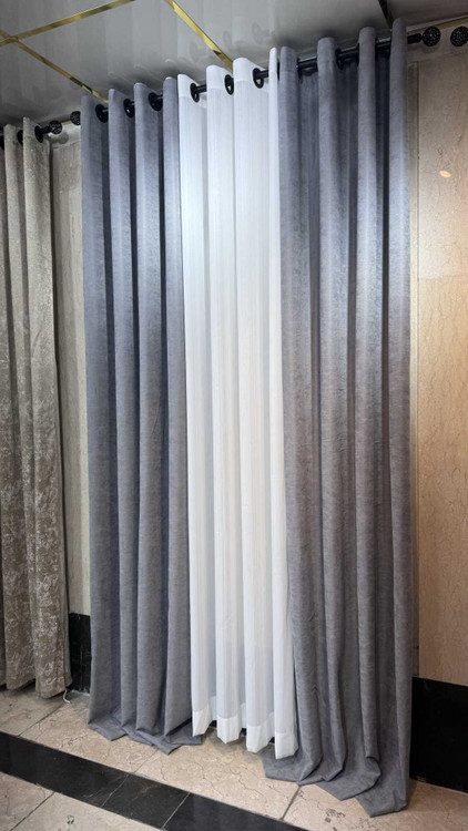 پرده مخمل ایرانی رنگ طوسی روشن